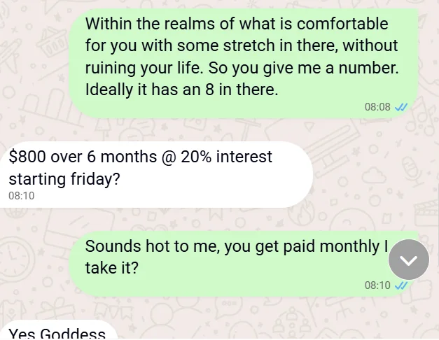 Who wants to have a financial drain with me? Debt contract?