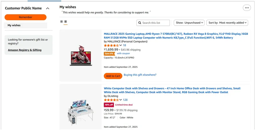 My Amazon wish list